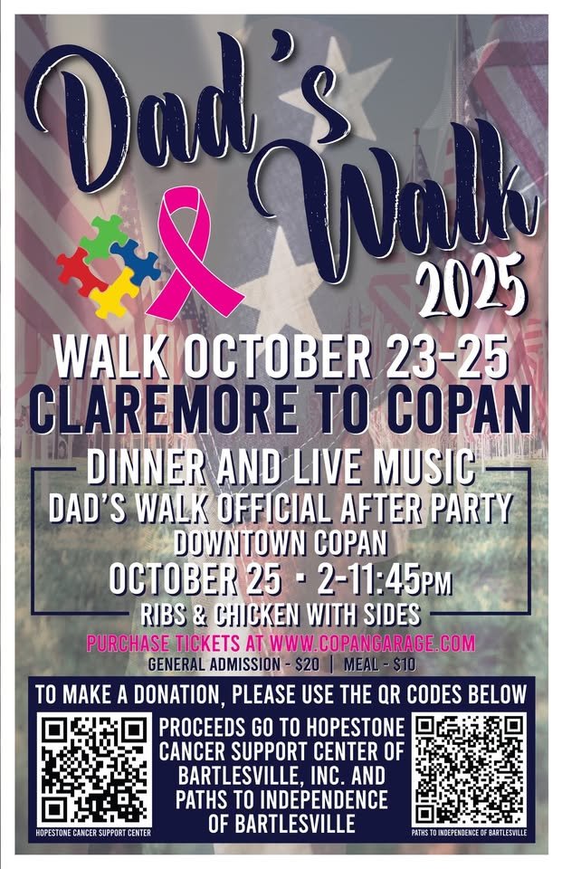 We are honored to be one of the recipients of this amazing event! Please consider supporting the cancer patient’s in Northeast Oklahoma and Southeast Kansas!! Dad's Walk Donation